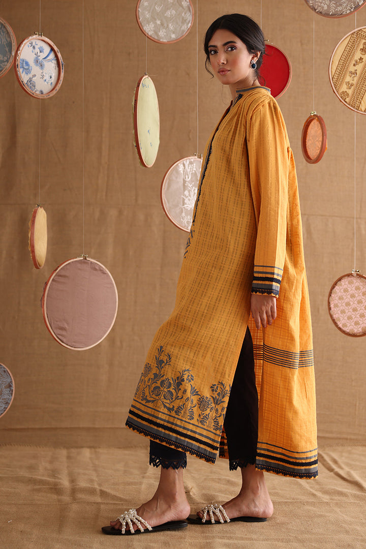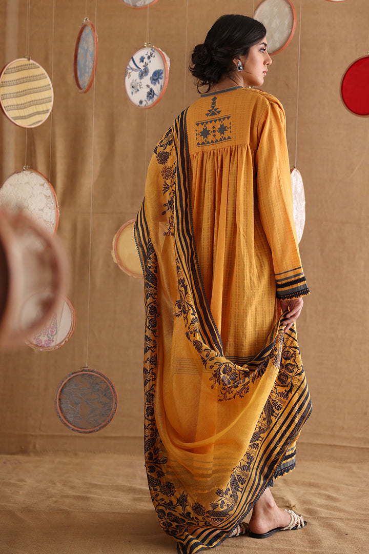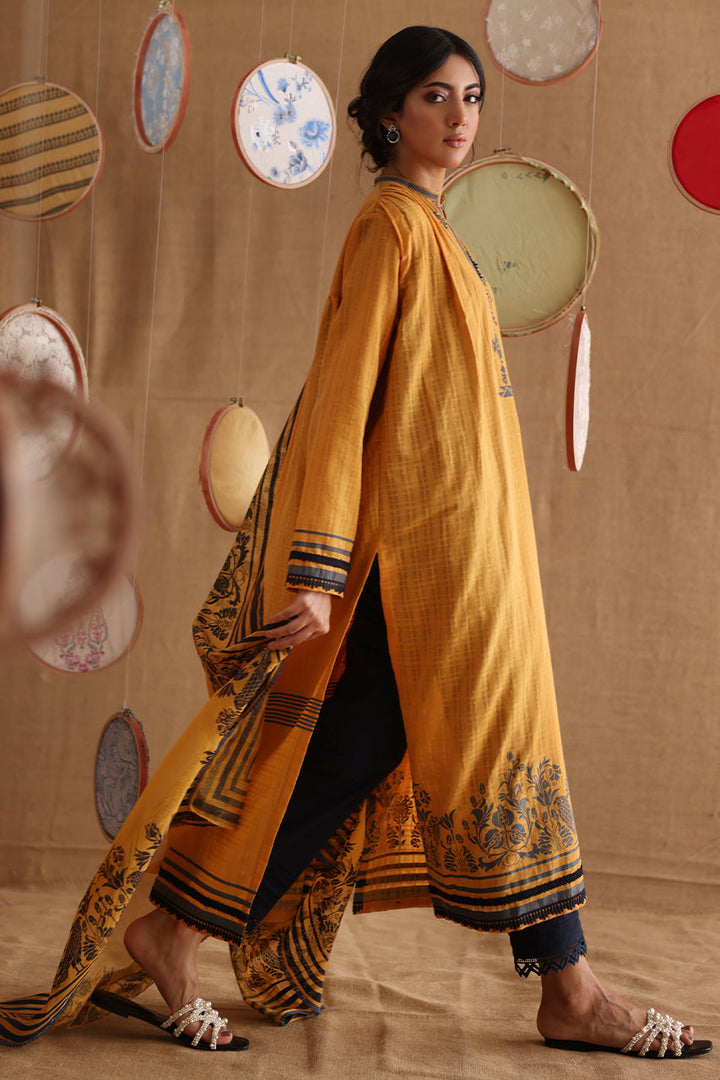 Finished with lace insertions and textured cotton pants and a cotton net screen printed dupatta to complete the look!