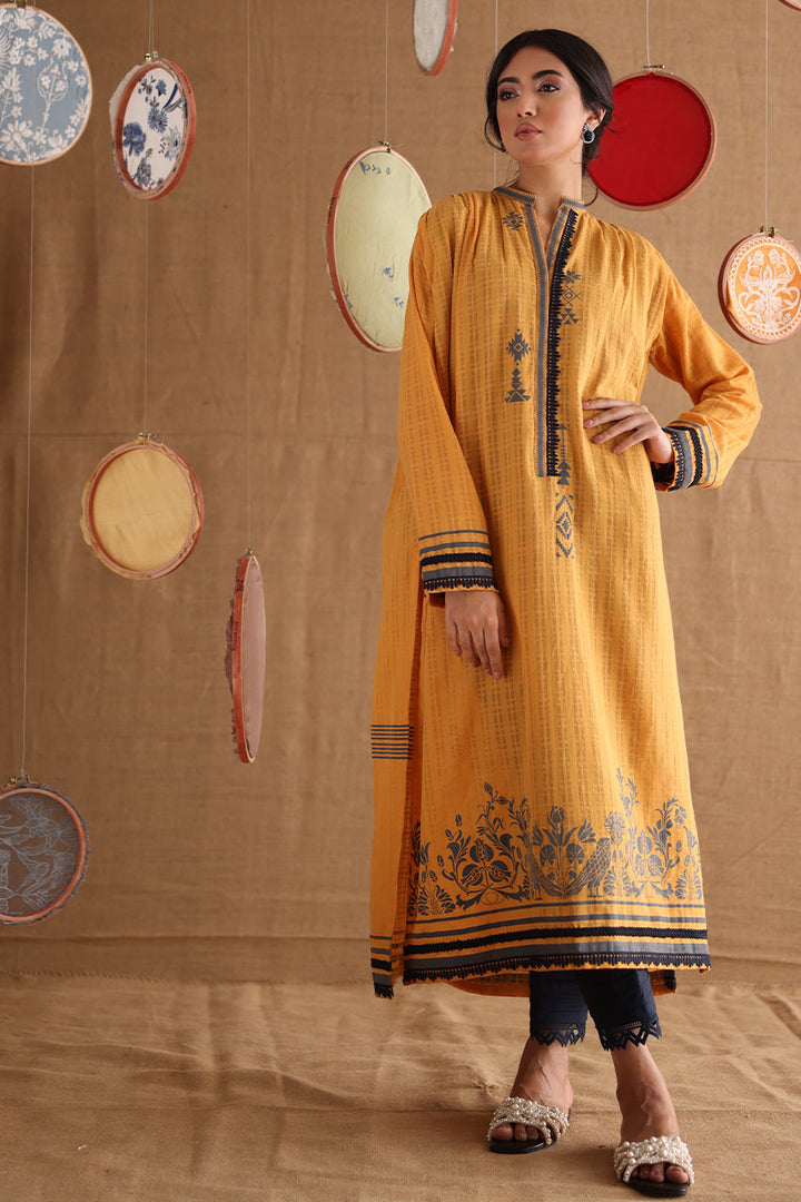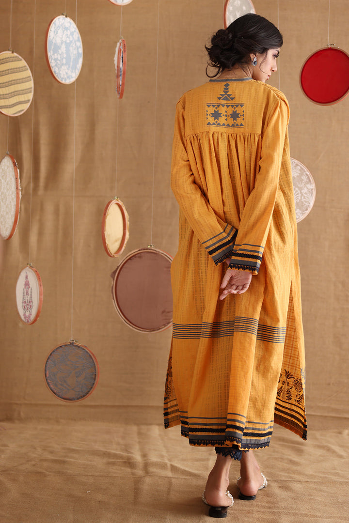 Exude the style this season in this textured cotton mustard shirt in this unique navy blue and charcoal signature NUR screen printing.
