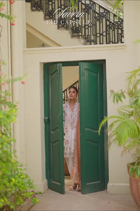 Delivery in 2 WeeksWhite and rust meet in this chintz narrative. The short kameez, cut from white kora, is embroidered with floral and avian chintz motifs in rust, sage, and dusty pink, blooming along the length before deepening at the hem. Finer tendrils frame the neckline and sleeves, finished with cutwork at the cuffs and an embroidered organza border at the hem. Delicate, handmade floral tassels add a final playful flourish to the piece. Underneath, a white khaddi silk shalwar with embroidered hems continues the rhythm. The rust organza dupatta envelopes softly, its length and borders traced with fine embroidered bands, while bolder motifs gather at the pallus and floral tassels sway at the corners. An echo of chintz, refined through restraint and lightness.