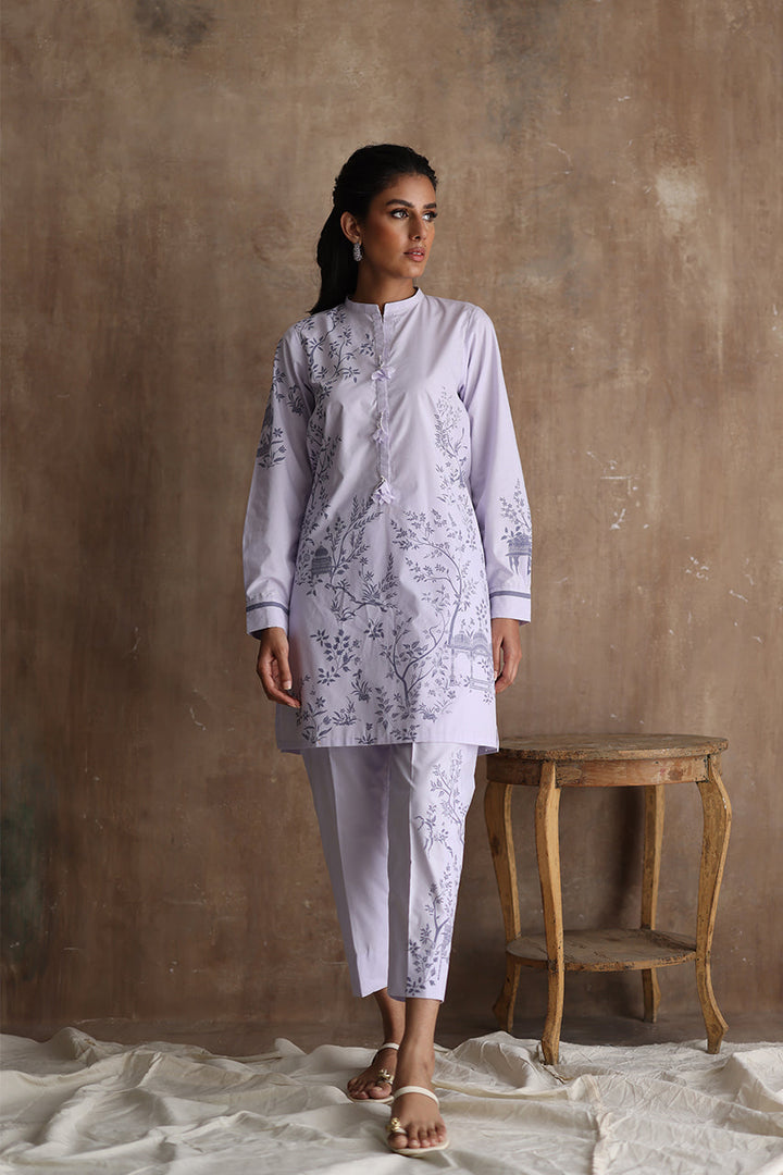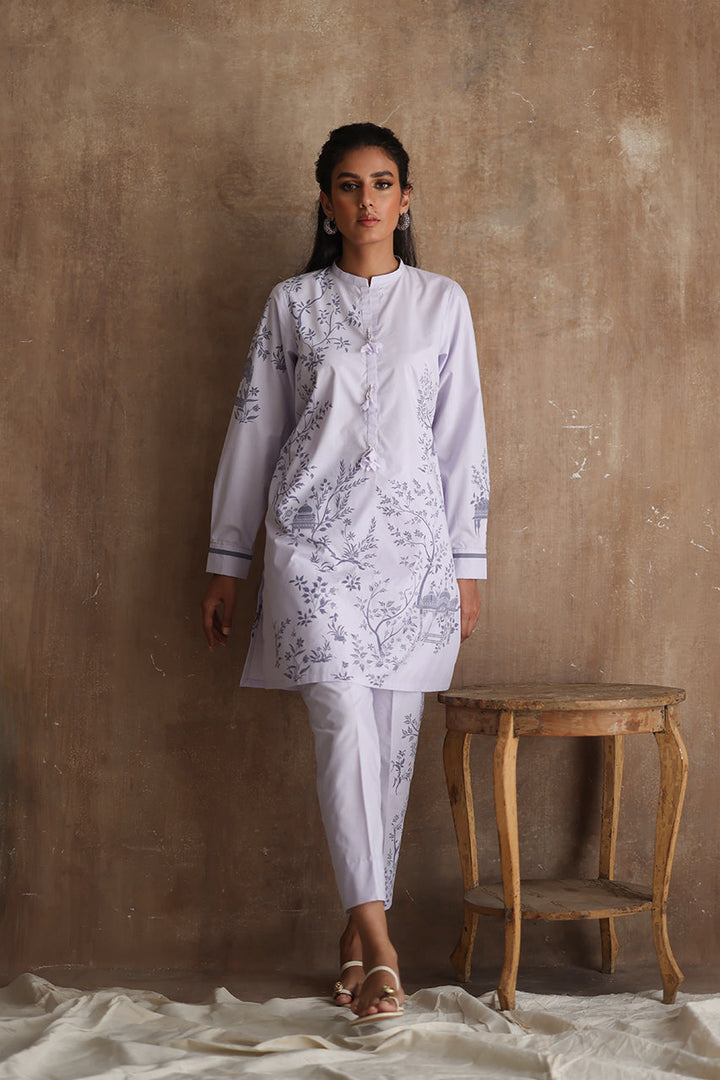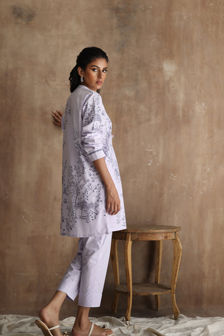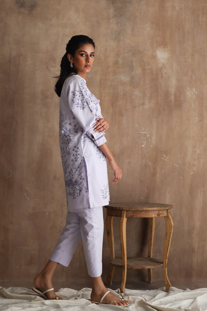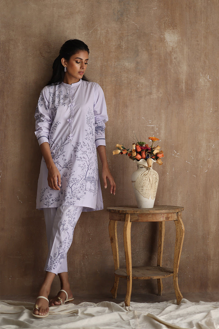 Introducing Rosalind, an exquisite lilac ensemble that exudes the timeless charm of Mughal architecture and delicate floral miniatures. Crafted from premium cotton fabric, Rosalind showcases a stylish shirt and pant set designed to elevate your fashion statement. The neckline is adorned with intricate floral fabric tassels and adorned with delicate pearl detailing, adding a touch of opulence to this already stunning ensemble. Prepare to be gloriously adorned in the enchanting beauty of Tara, where elegance and sophistication intertwine to create a truly captivating attire.